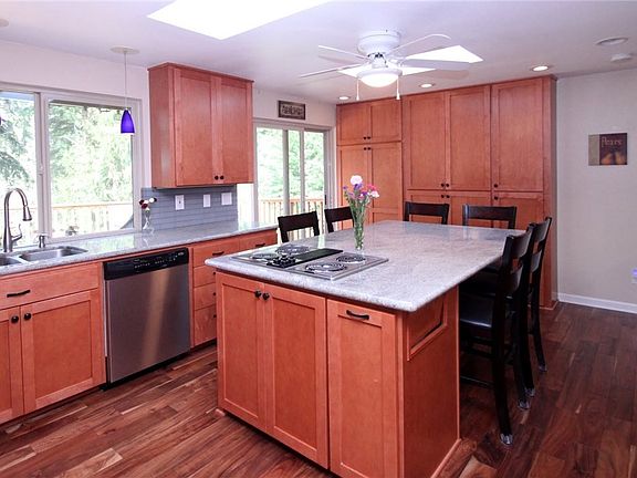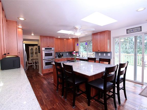 Time to explore the beauty and amenities of this UP home inside and out! Entertaining is a breeze utilizing 2,984-sqft with a 39'x14' deck off main; Cook for a crowd w/ Stainless Appliances, Island seating 6, Double Oven, Granite Counters & Pull-out Shelving. Finished daylight basement has huge rec room, 3 bds, utility room, and second deck. Tons of storage/Loft in the garage. Upgrades include engineered hardwood, laminate, double sinks/shower heads in Master, Windows in '05, Heat Pumps in '08!
