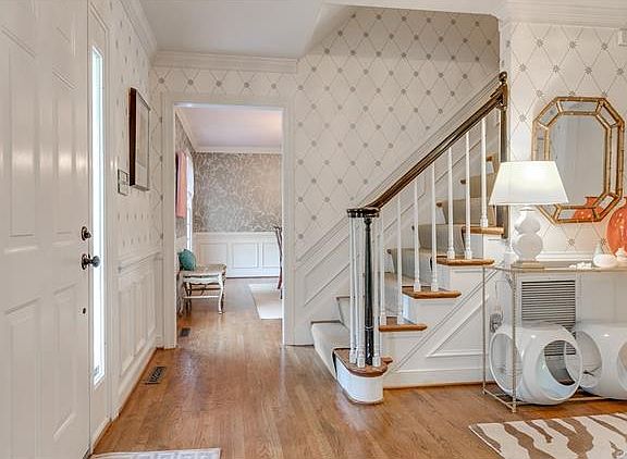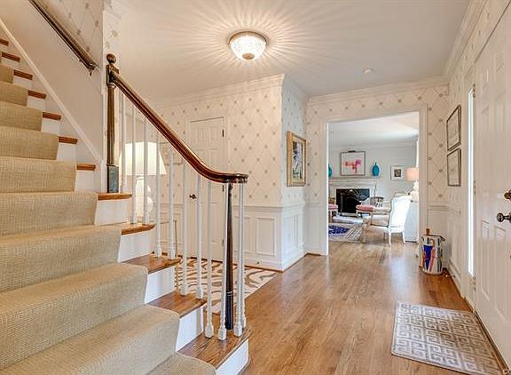 A Fresh Twist on a Classic! This two-story Colonial with circular front driveway and Grand Manor roof has .67-acre lot with a beautiful, fully fenced level rear yard and plenty of room to play! Interior updates throughout include the renovated kitchen, enlarged island with Carrera marble counter and gas cooking, and the adaption of the sun room to a casual dining area with French doors to the deck. First floor playroom just off the kitchen includes a mud room with cubbies for storage, an extra pantry, extra half bath, and plenty of space for TV, toys and ping pong! Upstairs are 5 bedrooms, 3 full baths including a luxurious master bath with Carrera counters and oversized Carrera marble shower, and a 3rd floor bonus room for a home office getaway. And you'll love the screened porch just off the kitchen and large deck for outdoor relaxing and entertaining! Close to Collegiate School!!