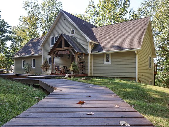 Water Views of Lake Monroe waiting for you to enjoy with this beautiful 3 bedroom, 4 full bathroom home with finished walkout basement in Salt Creek Estates. Unique Custom Build with Red Oak Timber solid post and beam home handcrafted by Timbersmith in 2001 accented with hickory hardwood floors. Soaring 2 story Living Room with floor to ceiling stone, wood burning fireplace and open concept with Kitchen and Dining room. Kitchen has stainless appliances, quartz countertops and Breakfast Bar. Convenient main level Laundry room. Upstairs you will find Loft with lake views and Primary bedroom with jetted tub, separate shower, double sinks and walk in closet. Basement walks out to patio on lake side with Family room, Bedroom & Full Bathroom and Bonus Room. Minutes away from launching site, homeowners have opportunity to lease boat slips or use visitor slip by HOA guidelines. Whole house Propane Standby Generator that automatically turns on. Nature, woods and sunsets are waiting for you!