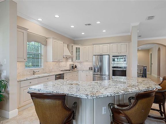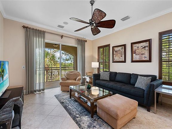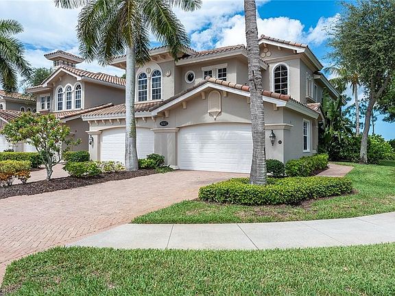 Enjoy tranquil golf course & lake views, plus watercolor sunsets from this gorgeous, upgraded end unit in Cherry Oaks in Fiddler's Creek! A private elevator welcomes you to this Furnished, 3-BR + Den coach home with a Great Room floor plan filled with natural light. Beautiful upgrades include crown molding, chair rail, wood ceiling, plantation shutters, designer light fixtures, tile on the diagonal, wood flooring in the den. The well-appointed kitchen boasts rich granite countertops, stone tile backsplash, custom, underlit cabinetry & island with breakfast bar, GE Monogram appliances including SS French door refrigerator, wine cooler, convection wall oven, warming drawer & gas stove. Unwind in the inviting Master Suite, featuring upgraded, custom California Closets & access to the tiled lanai. En-suite has dual sinks, separate soaking tub & enclosed WC. 2 additional bedrooms, with California Closets, and full baths for your guests' privacy. Tankless hot water system, laundry room with sink & cabinets, security system, Trane deluxe 24-hour ON HVAC system with remote smartphone control & monitoring. Optional Golf, Beach & Marina memberships are available.