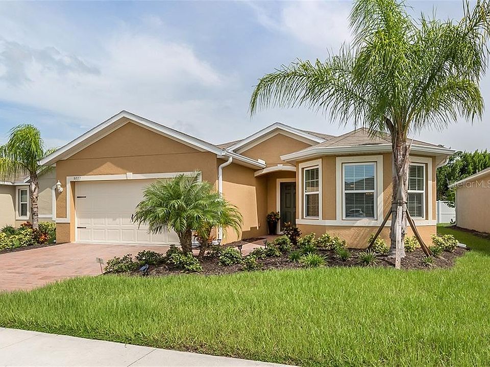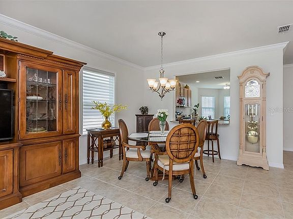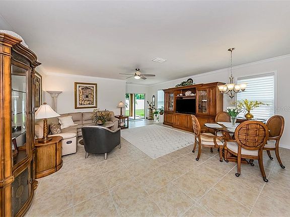 Meticulously cared for home is in move-in condition. Tile, carpet, and wall colors are all light and very clean. The eat-in kitchen provides stainless steel Whirlpool appliances, lots of cabinet space with pull-out shelves, and an area for a kitchen table in front of the bay window. The large great room/dining combo really gives you that wide open feeling. Sliding doors provide access to your private backyard that can be fenced. Master bedroom is large with a very nice ensuite. The two additional bedrooms are separate from the master providing that appreciated privacy. Additional upgrades include beautiful ceiling fans, lighting, stylish window treatment, crown molding, garage door stabilizer, keypad, gutters, downspouts, and storms shutters. This is a gated community of only 109 homes, community pool and shelter.