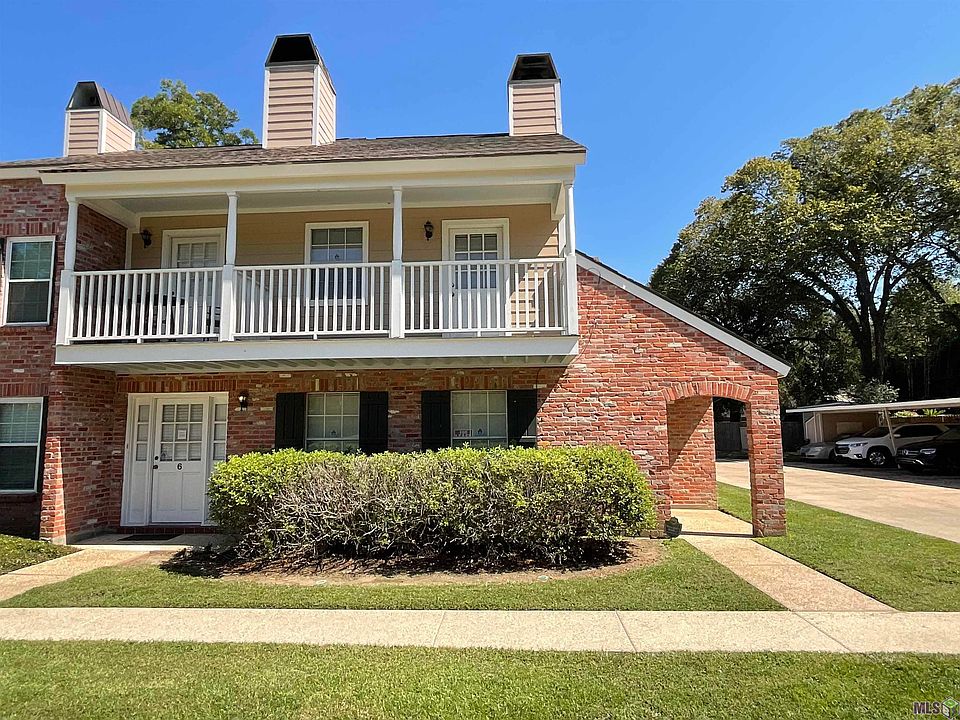 Lovely 3 bedroom/2 bath corner unit available now in highly desirable Highland Oaks subdivision! This is a gated community with beautiful green space surrounded by gorgeous oak trees. Small fenced courtyard view from dining room and kitchen. Features: covered front porch entry and spacious balcony off upstairs bedroom. Nice bench seating at front door, security system, washer/ dryer/refrigerator/freezer combo and microwave are all included in the lease and must remain in the unit at the end of the lease period. Fireplace in living room and covered parking for 2 vehicles. This end unit is located just a short stroll from the community pool and is conveniently located near LSU, shopping, restaurants, Baton Rouge General Hospital and our Lady of the Lake Hospital!