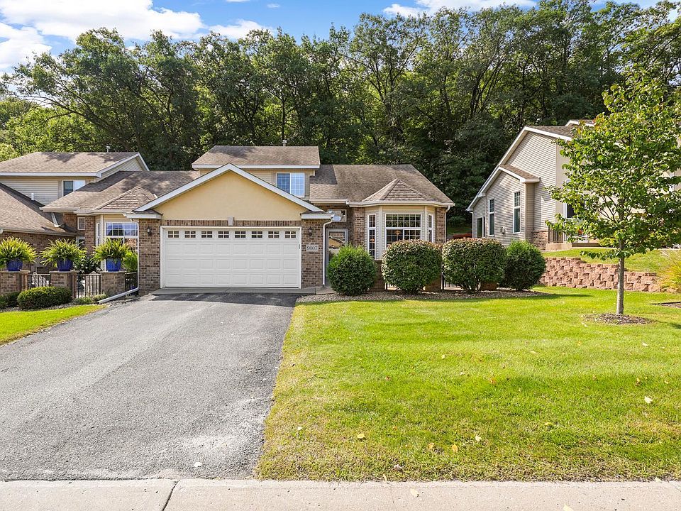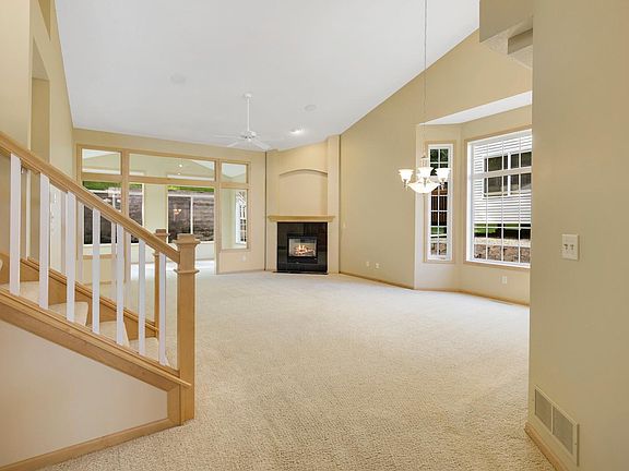 This well-maintained end-unit townhome features towering, vaulted ceilings and a main floor owner's suite with a luxury bath. In 2023, this suite was remodeled to also included an expanded walk-in closet. This bathroom features a walk in glass shower, large vanity, and tile floor. The open layout offers abundant natural light. The expansive main living area boasts an informal dining area, gas fireplace and has many windows including transoms windows between the serene sunroom. The spacious kitchen features maple cabinets, granite island, a tall pantry cabinet providing ample storage and access to a large private front patio. The kitchen has a large pass through keeping you connected with activities in the main living space. Upstairs provides a bedroom, private bathroom and loft area. This is a very versatile space as an office area or private living space for family or visiting friends. The nicely finished lower level includes a family room, third bedroom, full bath, a brick gas fireplace and large storage space. Additional amenities: main floor laundry, private backyard, and newer furnace and AC (2021). Excellent location!