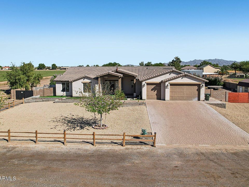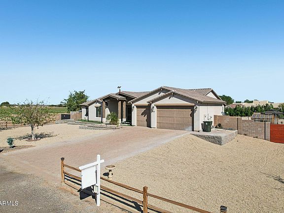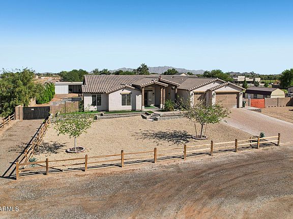 No HOA, paid off solar, and irrigation on over an acre with breathtaking mountain views! Discover country living at its finest in this spacious 4 bed, 3 bath home set on a massive 46,696 sqft lot! This property offers horse stalls, hobby shed, mature trees, NEWER POOL, and a covered patio ideal for relaxing and playing outdoors. Inside, enjoy well planned living space featuring an open great room and a split primary floor plan. Energy-efficient spray foam insulation and OWNED solar panels-keep it green! The kitchen shines with granite countertops, a huge island, and a walk-in pantry, while the primary suite offers backyard access, a glass-enclosed, newly tiled shower, and huge walk-in closet. This serene retreat combines comfort, efficiency, and space for all your favorite activities