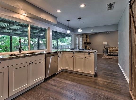 Stunning remodel includes sliding barn style doors. Designer finish-outs, Recessed lighting, High End Laminate floors and new carpet throughout the home. New windows. Garage doors and openers. Updated large kitchen comes complete with new white cabinets, granite counter tops, stainless steel appliances: dishwasher, gas stove & built-in microwave. Must See This One! Agent/Owner