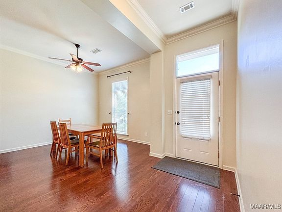 Look no further this beautiful home offers the perfect layout with an open and flowing design to suit any lifestyle. A spacious central family room with a handsome fireplace flows seamlessly into the kitchen and showcases wonderful views of the relaxing covered patio and backyard. The kitchen is a showstopper with a large breakfast nook, stainless steel appliances, and an abundance of designer cabinetry. A formal dining room provides flexibility and can also serve as a formal living space. The master suite is thoughtfully positioned on one side of the home for privacy, with guest rooms located on the opposite side. In 2024, new hardwood floors were installed throughout the home, adding warmth, elegance, and long-lasting value. Woodland Creek is in the heart of the charming Pike Road community and is zoned for the brand-new Pike Road School System. Neighborhood amenities include a clubhouse with a state-of-the-art fitness center, a resort-style pool with a kids' pool, a bark park, a playground, and scenic walking trails.