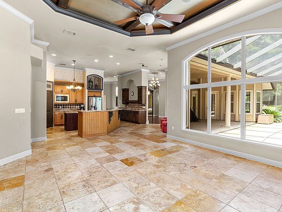 Stunning Finishes: Enjoy the beauty and durability of travertine tile and antique rustic plank wood floors throughout, along with extensive crown moldings. \