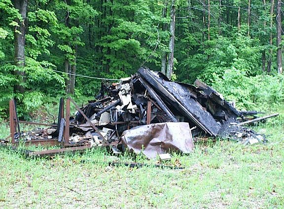 10 acres of mature hardwoods adjoining state land. 2 car garage for all the toys, well, septic and electric on site. Home on site has burned down.