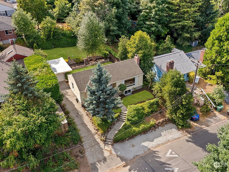 Perched up off the street on an oversized lot in sought-after Maple Leaf, sits this bright & sunny 1946 Cape Cod. On the main level, you’ll find a large living room w/ cozy fireplace & walls of windows, dining area, galley kitchen, 2 bedrooms, & a full bath. Head downstairs for 2 more bedrooms, another full bath, 2nd kitchen & spacious rec-room. A separate entrance makes this the perfect rental space should you wish. Out back, a large deck overlooks the massive backyard & detached garage. Other highlights incl. new LVP flooring, carpet, & fresh paint. All in a quintessential Seattle location; blocks to eateries, cafés, parks, Northgate Station, Park & Ride, Seattle Kraken Training Center, w/ easy access to I5, 99, & downtown. Welcome home!