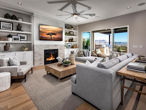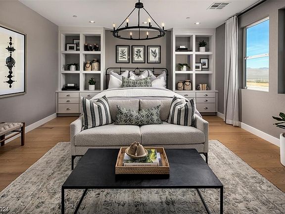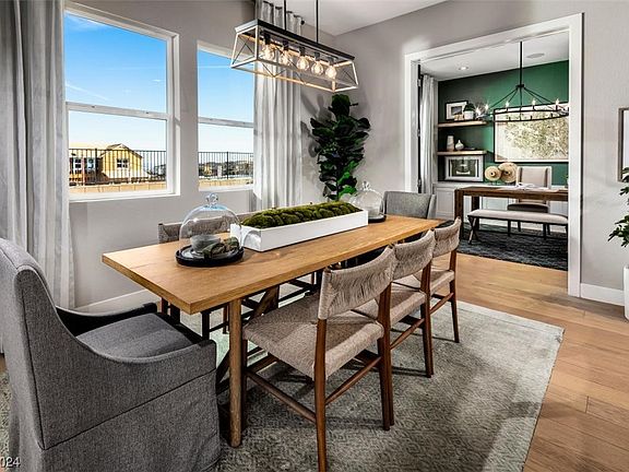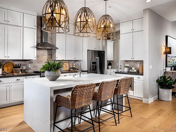 April move-in! This stunning new-construction home is loaded with extras. The open-concept main living areas are complete with upgraded tile flooring. Sliding door access from the causal dining and upgraded 12-foot multi slide stacked door in the great room are perfect for indoor/outdoor living. The gourmet kitchen boasts soft close full overlay cabinets, quartz countertops and designer backsplash. Single lite French doors in the home office provide an open, yet private space. The serene primary bedroom suite is complete with huge walk-in closet, direct access to the laundry room and a spa-like bath featuring freestanding tub, luxe shower and dual sink vanity. Additional highlights include a first-floor bedroom with walk-in closet and private bath and a secluded workspace off the foyer. This brand-new home is in a gated community with its own community pool and access to incredible Skye Canyon amenities including Skye Center and Skye Fitness!