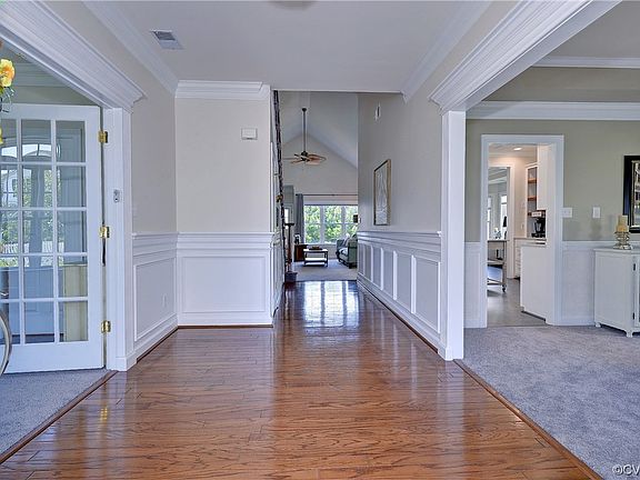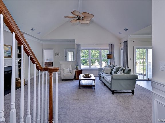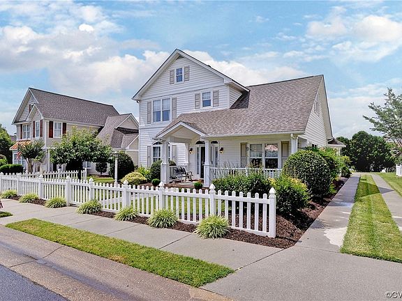Experience effortless, one level living in the highly sought-after Orchard Hill section of Stonehouse! This turnkey home offers the ultimate convenience with yard maintenance included. Enjoy EZ Commutes to Richmond, Norfolk, or nearby historic Williamsburg, VA. You'll be captivated by the quality of this beautiful cottage-style home. High-end finishes like crown molding, large baseboards, chair rails, and tray ceilings add a touch of sophistication. The spacious great room boasts a cathedral ceiling and seamlessly connects to the well equipped gourmet kitchen, with quartz counters and breakfast area. The large primary bedroom offers a walk in closet and a private bath complete with jetted tub and shower. A front office with a full bath and a formal dining room with a tray ceiling complete the main level. Upstairs, find three additional large bedrooms and a full bath. Orchard Hill features a beautiful neighborhood park and pool exclusively for neighborhood residents. You can also enjoy the wide range of amenities offered by Stonehouse, including a pool, park, tennis courts, exercise rooms, picnic areas, a community garden, walking trails, and even a public golf course.