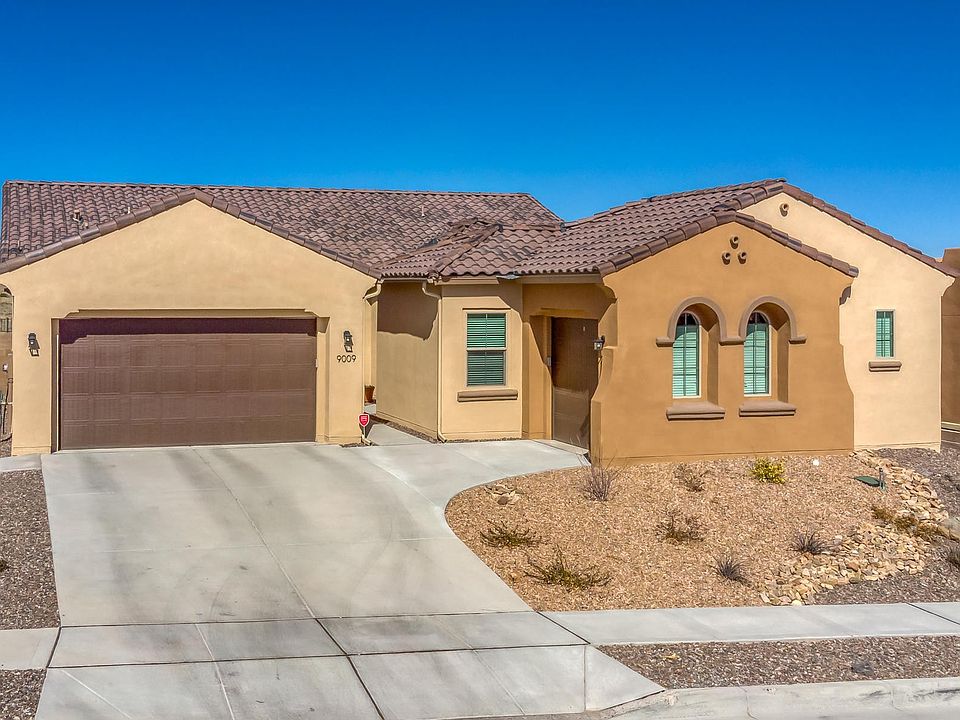 Stunning single story, less than 1 year old! Why build when you can buy this luxurious home with professional landscaping including view seating, built in BBQ grill, synthetic lawn, pre-wired for water feature, hot tub pad. Gutters, blinds etc. If you build new you need to add all of this and more. Over $80,000 in upgrades from builder then more! Premium view lot that backs to open space and offers beautiful views of Sandia Mountains and city lights. Build Green NM Silver for superb energy efficiency! 10 ft ceilings, 8 ft doors. Fabulous chef's kitchen with amazing cabinetry, granite, appliances, large island. Owners suite is huge with a large custom shower. 3 more large bedrooms for lots of flexibility. 4 ft garage extension with 8 ft doors for those large vehicles. 20 min to downtown.