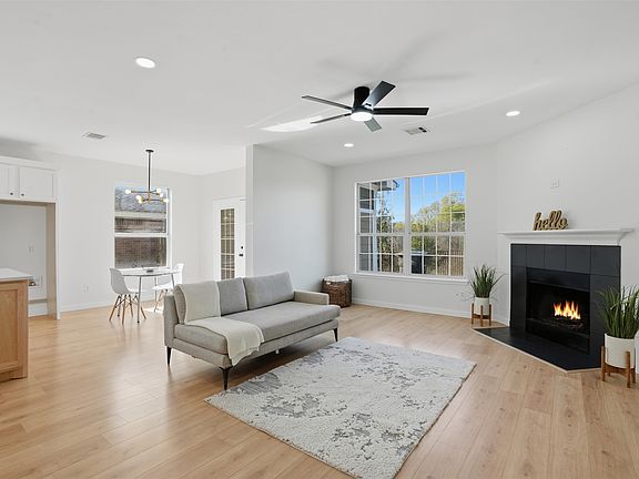 Step into modern elegance with this beautifully updated home, thoughtfully refreshed from top to bottom. A bright, open layout welcomes you in, filled with natural light and elevated by high ceilings that create a spacious, airy feel. Enjoy new flooring and lighting throughout, adding warmth, style, and a contemporary touch to every room. The kitchen stands out with brand-new cabinets, while the upstairs features a custom cabinet and entertainment center perfect for organization, display, and comfortable living. The living room centers around a refreshed fireplace with new, stylish tile, giving the space a clean and updated look. Outside, the exterior shines with fresh landscaping completed in October, boosting curb appeal from the moment you arrive. Major mechanical upgrades bring additional peace of mind, including the downstairs AC condenser and furnace replaced in October 2025. Located in a wonderful and highly desirable neighborhood, this home places you just minutes from excellent shopping, dining, and entertainment. Even better—a community pool and playground are just steps away, offering fun, convenience, and relaxation year-round.