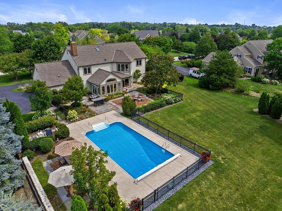 This impeccably cared for Trustway Homes property will exceed your expectations. Truly move-in-ready. Lg 3 car garage, soaring vaulted ceilings, remodeled primary ensuite spa bath, formal dining and great room, warm and open family room, and your spacious eat in kitchen. The incredible Sunroom addition includes the one-of-a-kind South-facing backyard oasis (attached video is a must see!) w/ private pool, lush landscaping, stone and brick patio, and built-in bar w/ gas grill. This home is perfect for entertaining both indoors and out. The green space beyond the pool extends into the treeline for all your recreational needs. All new windows, recently painted exterior, tear off roof and gutters, newer furnace, AC, and water heater... the list goes on and on. Even more beautiful in person!