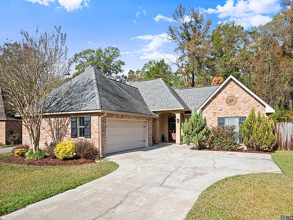 Centrally located in Denham Springs. This well-kept home offers an amazing private lot in the cul-de-sac with the fenced backyard facing private wooded area offering lots of privacy, and a covered screened in patio. The open floor plan features a living room with 10' ceilings, crown molding and ceramic tile flooring while the well designed kitchen offers beautiful Cypress cabinets, generous counter space and ample seating. Large master suite features vaulted ceiling and hard surface flooring; Master bath offers double sinks, a a jetted tub and separate shower. Large walk-in closet. No carpet in this home. If entertainment space or a tranquil outdoor retreat is your goal, step out onto the fully covered rear patio and also enjoy the fully-finished detached building with A/C for your summer comfort!