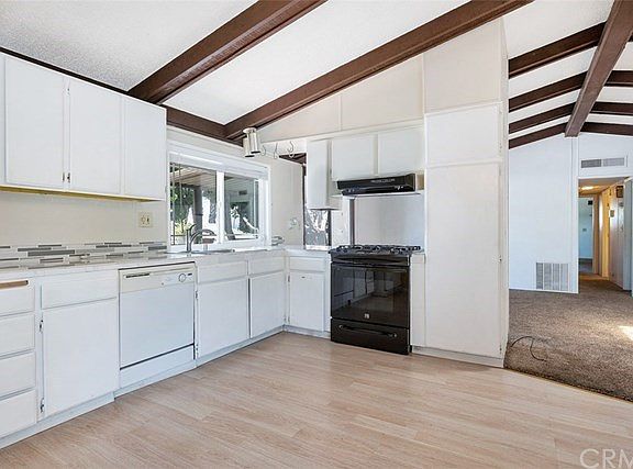 Welcome to this elegant double wide retreat home in the peaceful Wildwood Mobile Country Club. Enter this stunning community and learn this is the lowest priced 2 bedroom home in the Country Club. Inside you will experience the delights of this home's open layout see-through kitchen, so you can cook, dine, and enjoy the living space simultaneously. Extra spacious, this home has high arching vaulted ceilings supported by stylish wood beams throughout. The master bedroom ensuite is extra large and private, and the additional beautifully updated bathroom includes a stunning soaking tub and luxury vanity. Plus, you can stay cool all summer long with upgraded central AC. Enjoy the peaceful and lush outdoor covered patio - perfect for entertaining or relaxing - or partake in the many amenities of the Country Club, including a swimming pool, billiards room, a community center, and the wonderfully maintained grounds. Come view this amazing home for your opportunity to live in Wildwood Mobile Country Club at an affordable price! All appliances included.