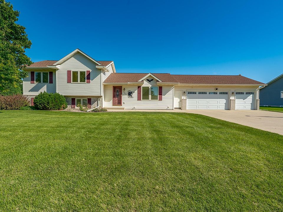 This charming and spacious home, boasting four inviting bedrooms and three well-appointed bathrooms, is nestled in a delightful residential neighborhood known for its friendly atmosphere. The main level serves as the heart of the home, offering a seamless flow between the living room, dining room, and kitchen. Sunlight streams through the sliding glass doors adjacent to the dining room, providing effortless access to the beautifully landscaped backyard. Step out onto the meticulously poured patio, an ideal setting for summer barbecues or fall fires. Complete with ample space for a grill, fire pit, and comfortable outdoor furniture. Enjoy the picturesque view of the serene field behind the house, perfect for outdoor relaxation. As you ascend to the upper level, you'll discover three cozy bedrooms, and two bathrooms. The master suite features a private bath, ensuring both convenience and privacy for its occupants. The lower level presents a versatile living space that can be transformed into a cozy family room or a playful playroom for children. Here, you'll find a comfortable bedroom featuring an egress window, along with a thoughtfully designed half bath nearby. A generous laundry room makes this area extremely functional. Venturing down another short flight of stairs, you'll uncover an extensive storage area alongside the home's essential utilities, providing all the space you need for organization. Another nice feature is the additional entryway to the garage, located in the basement. The garage features three stalls and is even equipped with heating! This home is truly ready to welcome its new owners and create lasting memories!