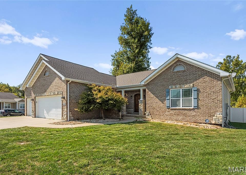 Welcome to 901 Ambercrombie Ct, a 4 bed, 3 bath ranch with over 2,500 sq ft of finished space on a quiet corner lot in the Parcs / Arbor Green subdivision. The great room features vaulted ceilings, a fireplace, and an open kitchen that's perfect for gathering. Hardwood floors run throughout the main level, with luxury vinyl tile in the finished basement for added living space, a fourth bedroom and a possible home theater space. Enjoy outdoor living on the deck and patio, and peaceful streets between two culs-de-sac with minimal traffic. A comfortable home in a friendly neighborhood with room to grow.