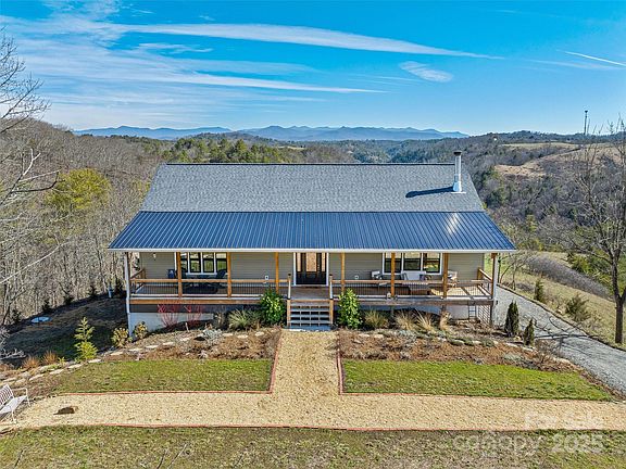 No STR restrictions! Blending craftsmanship, sustainability & comfort w/ long-range views, this spacious home offers 4 bedrooms (3-bedroom septic), 3 bathrooms, 2 living areas & a large home office—perfect for remote work/multi-generational living. At its heart is a solid wood kitchen reclaimed from a Connecticut estate, featuring granite countertops, Viking cooktop & double wall ovens, fireclay sinks, & an integrated Bosch dishwasher. Practical upgrades include zoned HVAC, UV whole-house water filtration & fiber internet. Spend cozy evenings by the wood-burning fireplace in the spacious & light-filled great room, then retreat to the main-level primary suite. Outside, relax on the covered front deck & enjoy mature perennial landscaping and the primarily forested ~10-acre lot. A rare blend of refined materials, smart upgrades, and Appalachian charm just 10 mins from downtown Marshall and 30 mins from AVL. Matterport tour + video available.