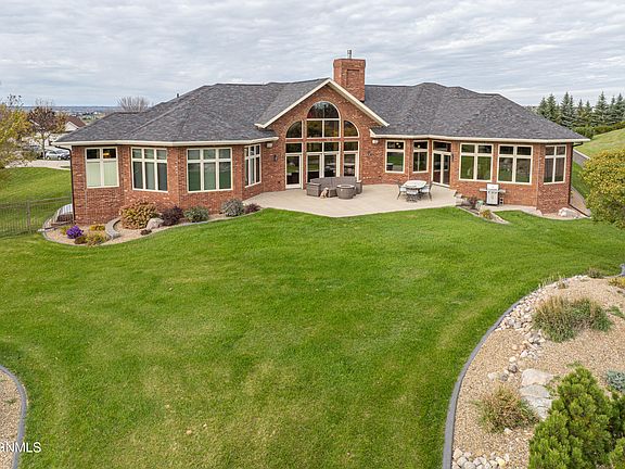Stunning Ranch-Style Home with Panoramic Views in NW Bismarck! Welcome to this extraordinary ranch-style home located in a quiet cul-de-sac at the top of a hill in the HEART OF NW BISMARCK. Situated on a 1-acre lot, this property offers breathtaking panoramic views of the city and the Capitol Building, all within a beautifully landscaped and fully fenced backyard. With nearly 8,000 sqft of meticulously finished space, this home was designed with comfort, luxury, and functionality in mind. Featuring 5 spacious bedrooms, 5 bathrooms, 2 dedicated offices, an exercise room, multiple living and recreation spaces, and premium architectural details throughout, this is a rare and remarkable find. The main floor Features a GRAND FOYER with cathedral ceilings. Right off the entry you will find spacious home office with french doors and views of the front yard. There is a formal living room with floor-to-ceiling windows and a dual-sided fireplace and that is shared with kitchen/informal dining area. Plus there's a half bathroom conveniently located on this wing of the home. There is also a formal dining area perfect for entertaining. The GOURMET KITCHEN features CHERRY CABINETRY, Quartz countertops, under/over cabinet lighting, a huge PANTRY, and an informal dining area. Right next to the informal dining area you will find the spacious informal living room with access t the beautiful patio and backyard. Also on the main floor is the LUXURIOUS PRIMARY SUITE, spa-like bathroom with whirlpool tub, walk-in tile shower, and massive custom walk-in closet. You will also find two additional bedrooms with walk-in closets and a shared Jack-and-Jill bathroom with Corian countertops and dual sinks. You will see the MAIN FLOOR LAUNDRY ROOM, a second guest half-bath, and mudroom conveniently located off the garage.