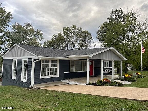 NEW PRICE!!!! *This home is NOT in a flood zone and was unaffected by Hurricane Helene* This beautiful newly remodeled home located in the Eastside community of Carter County is overflowing with curb appeal and charm. Situated on a double lot, this home features 3 bedrooms and 2 full bathrooms with an unfinished basement. The outside has new vinyl siding, new gutters, newer windows, a built on covered concrete porch and patio, landscaping, a fire pit in the back yard, and a storage building. Inside you will find new waterproof laminate flooring, new kitchen cabinets and countertops, new bathroom vanities, and freshly painted walls, trim, and ceilings. Downstairs is an unfinished basement with unlimited potential. Owner/Agent.