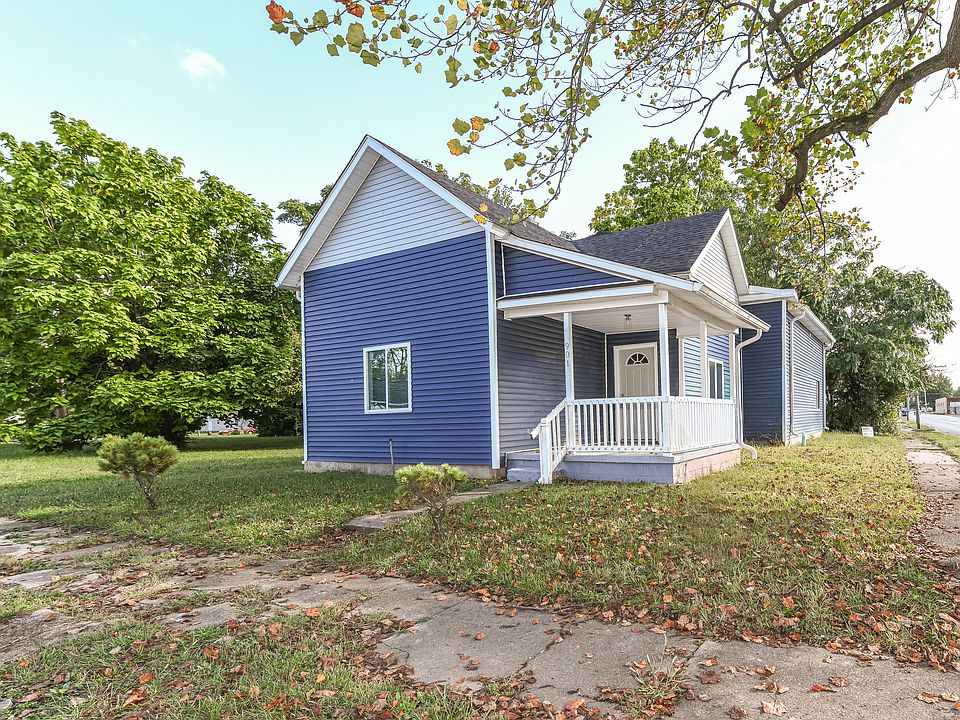 Step inside this wonderful, open-concept layout featuring soaring 12+ ft ceilings, brand-new flooring, fresh paint, and recessed lighting throughout. The kitchen, complete with new cabinets, a large island perfect for entertaining, and a seamless flow into the living and dining areas. Great for hosting guests or enjoying a quiet night in, this space is designed for comfort and functionality. The spacious primary suite offers a peaceful retreat with a walk-in closet and a private ensuite bath featuring a double vanity and new tile flooring. Two additional bedrooms provide flexibility for guests, family, or a home office, and a second fully updated bathroom ensures everyone has their space. Enjoy outdoor living on the large, covered front porch-ideal for relaxing mornings or evening gatherings. Located just 10 minutes from Ball State University, shopping, dining, and more, this modern gem is move-in ready and waiting for you to call it home!