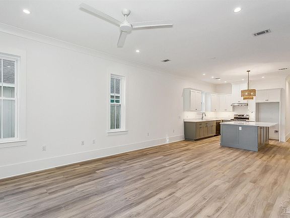 Bring Offer! New Construction and convenience in East Hill! Parks, eateries, shops, and breweries are within walking distance. This 4 bedroom, 3.5 bath open floor plan is 2232 square feet, and offers a large kitchen with plenty of storage, large family room, high ceilings, 2 master suites, can lights throughout, ceiling fans in the bedrooms , 8ft solid interior doors, crown molding and windows and doors have been cased with large trim finishes. This home build starts with a true "stem wall foundation" with 2'' x 6'' framing, 5/8 CDX roof decking, spray foam insulation in the attic, brick and Hardi Veneer Siding and impact-rated exterior doors and windows. The kitchen is equipped with GE Stainless Steel appliances to include dishwasher, wall oven with microwave and gas cooktop. Custom Cabinetry by STILE, all wood box construction, shaker style painted cabinets with soft close drawers and doors throughout to include the bathrooms and laundry and finished with quartz countertops and cabinetry pulls. The main floor master suite contains dual vanities, an over-sized tiled master shower with seamless glass doors, and is finished off with a large walk in closet, and separate water closet. 2nd floor has 2 additional beds, and a 2nd master suite! Home has dimensional shingles, vinyl, efficient impact rated windows and doors, fiberglass exterior doors, and structured wiring (cable, phone and internet). HVAC is an upgraded 16 SEER HVAC system, and has a tank-less gas water heater for endless hot water. Comes with a fully landscaped yard and irrigation system and fenced yard. Builder has treated the home with Anabec New Build, providing a 50 year warranty that resists mold and mildew, and includes a termite bond. This property is located within minutes of Pensacola Airport, Downtown Pensacola, and the beautiful white beaches. East Hill has access to I-10, Navy Federal Credit Union and all 3 local military bases. Any amenity you might desire is located very near.