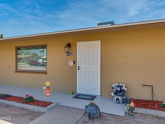 They don't make them like this anymore! This beautiful 2 bed 1 bath house and a bonus enclosed sunroom, this home has a great floorplan and many possibilities.The current owners have totally updated the house with fresh designer paint, new tile flooring, glass tiled subway backsplash in kitchen and bath, upgraded cabinets, touchless faucet, new sink and new woodblock countertops and baseboard, new SS Appliances, new recessed lighting in kitchen and study nook. New fans and new blinds. The bathroom has new lighting and fan and a fresh tiled shower. Newer carpet in both bedrooms. Remodeled laundry room with cabinets with ample space for storage, and LG washer & dryer set with pedestals. Grill on the covered back patio or have a cup of coffee while enjoying the view of the Superstitions Home has a newer roof newer AC and upgraded custom anderson windows throughout. These windows don't let in the heat or cold, So it's great on electric and helps block out sound. Per the city an up to 500 sq ft guest house could be built on back yard, buyer to verify.
