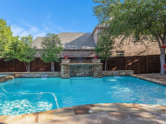 Breathtaking remodeled kitchen is a show stopper with extended island, freshly painted cabinets and fixtures, barn door to the pantry, updated backsplash, and high-end appliances. As you step from the kitchen to the backyard, your private oasis awaits. Enjoy the Texas sunshine in the sparkling pool or unwind under the expansive covered patio, complete with a built-in grill—perfect for weekend barbecues. The oversized backyard provides plenty of space for kids, pets, or even a future garden.