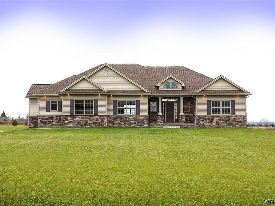 Stunning custom ranch built by Raber Development. 1 floor living at its finest! 2-acre lot, low Elma taxes, highly ranked Iroquois schools. High-end features throughout the home include: 2x6 exterior construction, stone exterior, high-efficiency furnace and AC, Regency fireplace, finished and insulated 3-car garage, master suite with his/hers walk-in closets, 75 gal soaking tub, walk-in tile master shower, crown molding throughout, over 1,000 sq. feet of 3/4'' solid oak flooring, cherry cabinets, granite countertops in the kitchen and both full baths, under-mount sinks, whole house backup generator, new black stainless Samsung appliances, LED dimmer controlled recessed lighting, and much more! No expenses were spared on this beautiful custom home! Must meet in person!