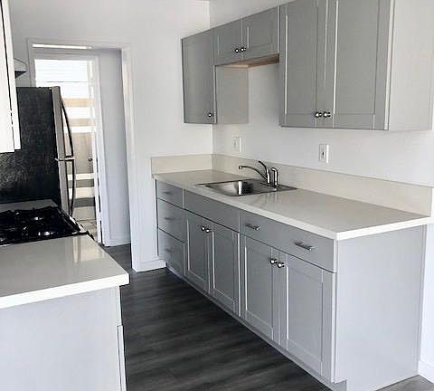 Front, upstairs unit, newly renovated, new hardware floors, all new kitchen and bathroom cabinets and appliances. This is a no smoking property 1 year lease