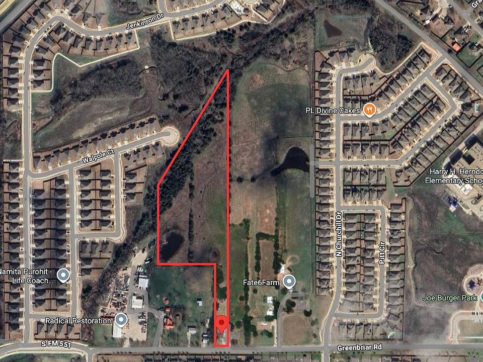 Discover an incredible opportunity in the heart of Fate with 5.3950 acres across TWO parcels, 901 Greenbriar Rd and the adjoining rear tract. This expansive property offers the ideal canvas for your vision, whether you're looking to build a private estate, develop multiple homesites, or create the perfect hobby farm. The existing home on the front parcel is a tear-down, giving you full freedom to design and build without restrictions of an existing layout. The land features a barn and a serene pond, adding charm and functionality to the property. Utilities, including electricity and water, are already available on-site, making this property development-ready. Situated in the rapidly growing Fate and Royse City area, this level acreage is perfect for residential or mixed-use development. The property is shovel-ready, with Fate City offering a smooth approval process for building projects. Its convenient location near I-30, shopping centers, Fresh Market, schools, and nearby Rockwall provides the perfect balance of suburban tranquility and city accessibility. This is a rare chance to invest in one of North Texas’s most desirable regions, known for strong housing demand and steady growth. Bring your builder and your vision to create a custom estate, multi-lot development, or private retreat on this prime property.