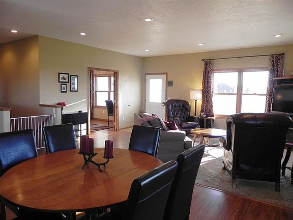 Don't miss out on the rare opportunity to own country acreage minutes from Minot w/ pavement all the way to your front door! This custom built, one of a kind, ranch style home has all the amenities you are looking for. On the main floor, you are greeted w/ a tiled travertine entry & open layout w/ lots of windows showcasing the gorgeous views. The kitchen has been well thought out w/ hickory cabinets, large island, pantry, & upgraded stainless appliances w/ double oven range & french door refrigerator. Off the living room, you'll love the bonus space w/ French doors that could easily serve as a playroom, office, den, etc! Your dining room flows nicely onto the covered deck w/ backyard access. The main floor master bedroom is spacious w/ a tray ceiling, ceiling fan, & private en-suite featuring double sinks, ceramic flooring, & shower w/ a tile surround. Also on the main is a second bedroom & awesome mudroom area off the garage access. The walk-out basement is sure to impress w/ an enormous family room featuring daylight windows & snack center perfectly setup to accommodate movie nights & entertaining! You will also find two more generous bedrooms, ¾ bath, & personal Laundromat - unlike anything you have ever seen before! Add all this to the 2 acre lot complete w/ underground sprinklers in the front yard, a fantastic play fort, & supersized 40x26 HEATED garage, large enough for four cars & this home cannot be beat!