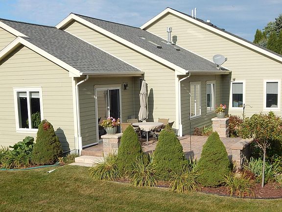 Newer condominium. Seven years old. Front entry with 0pen staircase to with wrought banister to lower level. Open kitchen with dining area. Patio doors from dining area lead to a stone patio. Spacious living room with gas fireplace and additional space for formal dining/entertainment area... Primary suite with walk in closet, full bath with double vanity and walk in shower. Second BR has bathroom access. Finished basement with larger family room, two offices and full BA. Two car attached garage. Spacious back yard.