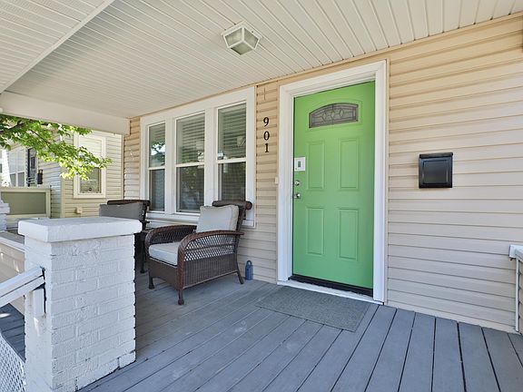 Sunlight pours in through the windows, highlighting the home's cozy character. Upstairs, two comfortable bedrooms and a fully updated bathroom provide a peaceful retreat. The true magic happens outside: relax on the classic covered front porch or unwind on the covered back deck, surrounded by beautiful mature landscaping. Poured concrete parking back in rear with gate.