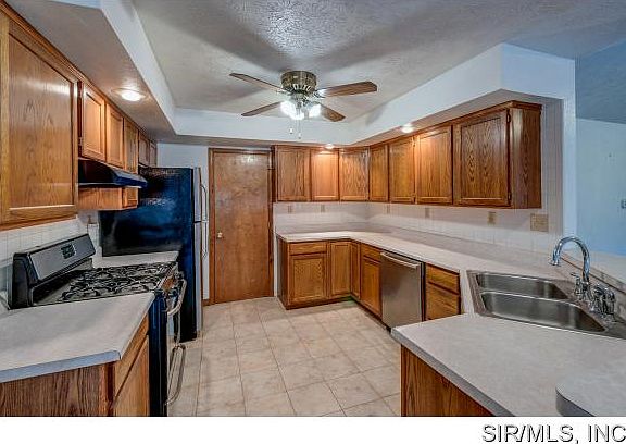 Call The RED Team (618-977-9862) to preview this great home or for a free real estate consultation! Wow....this 5 bedroom 3 bath ranch with finished basement is a lot of house for the $$. Enjoy the living room with beautiful new engineered hardwood floors, cathedral ceilings, and fireplace. Living room opens to breakfast area and kitchen with easy access to the deck overlooking the large fenced in yard. Kitchen is open to the dining area and living room and features stainless steel appliances, bartop dining, walk-in pantry, and new flooring. Master bedroom has walk-in closet, and double sinks in master bath. Guest full bath features new floor, sink & vanity too. You will love the space of this finished walk-out basement which could be an in-law suite. Featuring a large living room with built-in shelving and space enough for a family room and a game room. 2 large bedrooms with walk-in closets, updated full bath, and bonus room. Extra closet space in basement. Central Location!