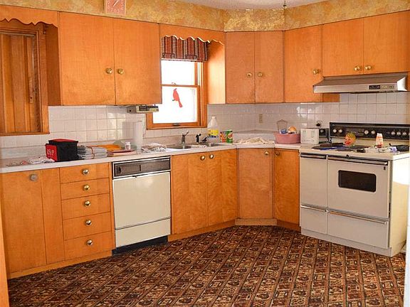 Large ranch style home located in quiet Frankfort. The sq ft and large bedroom sizes in this home will surprise you. Huge over-sized two care garage plenty of room for projects. Unfinished basement and attic space above house and garage both make great storage space. The metal roofing will last for years and years. On the south side of the home is a nice covered sitting area that has entertained many friends and family over years. This same space could be used for a carport if you needed. Sellers are motivated and with its size and charm this home is a project worth looking at.
