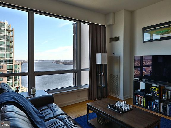 Experience sweeping views of the Delaware River from every room of this stunning 1 bedroom, 1 bath residence. Floor to ceiling windows fill the open concept living space with natural light, creating an airy and sophisticated ambiance. The designer kitchen features sleek cabinetry, stainless steel appliances, abundant counter space, and generous storage. Seamless engineered hardwood floors flow throughout the living areas, while the bedroom offers soft neutral carpeting for added comfort. The spacious owner’s suite includes a closet and a luxurious ensuite bathroom with a large jacuzzi tub, perfect for relaxing after a long day. Located within Waterfront Square Condominium & Spa, this premier gated community offers an exceptional resort style lifestyle along the riverfront, featuring 24/7 concierge service, a complimentary weekday shuttle to Center City, an indoor junior Olympic pool and hot tub, a wrap around river sundeck with expansive outdoor lounging areas, and a state of the art fitness center with steam, sauna, massage rooms, and on site fitness classes. Philadelphia’s largest green roof parks offer beautifully landscaped spaces with seating areas for entertaining, a play area, and a community herb garden. In addition, there are two fenced dog parks within the community. Twice yearly exterior window cleaning ensures crystal clear views, and semi annual A/C and heating filter changes maintain optimal comfort. Nestled within this private riverfront enclave, the community combines tranquility with urban convenience, just minutes from Center City, major highways, bridges, and the airport. Recent updates include newer hardwood flooring, custom window treatments, a customized bedroom closet, new kitchen appliances (2020), and a new water heater (2021). This residence presents a rare opportunity to enjoy elevated city living with stunning views, thoughtful upgrades, and premier amenities. Schedule your private tour today and discover why Residence P2305 is one of Philadelphia’s most coveted addresses.