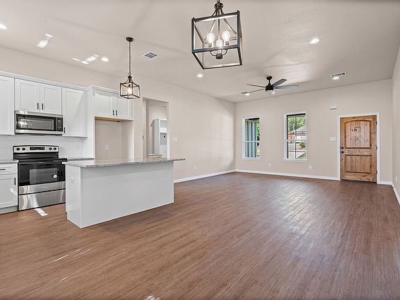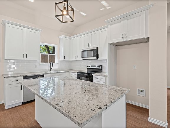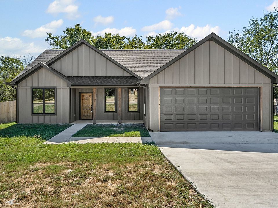 Discover this stunning brand-new construction just minutes from the historic Crazy Water Hotel and the vibrant charm of Downtown Mineral Wells. Here, you’ll enjoy the rare combination of a thoughtfully crafted new home in a town steeped in history, beauty, and community spirit. From the moment you arrive, the inviting front porch sets the tone for a home designed for connection and comfort. Step inside and you’ll be greeted by light and neutral finishes throughout, creating a fresh, airy ambiance that complements any style. The open-concept design seamlessly connects the kitchen, dining, and living spaces, making it ideal for both everyday living and entertaining. A custom oversized window in the dining area floods the space with natural light, framing the outdoors while enhancing the warm, welcoming atmosphere inside. The kitchen is the true heart of the home, designed with both form and function in mind. Ample cabinetry and modern finishes combine with an intuitive layout to create a space perfect for cooking, gathering, and making memories. Just beyond, the mudroom is complimented by a small workspace and laundry area with a utility closet and overhead cabinets. Each bedroom has custom designed closets to maximize organization and functionality without sacrificing style, along with custom cabinetry in the pantry you only see in custom homes, which showcases the builder’s commitment to detail and craftsmanship. Practicality is seamlessly woven into the design, with a two-car garage outfitted with LED lighting and an 8-foot privacy fence enclosing the backyard to create a secure retreat for outdoor living, gardening, or simply unwinding at the end of the day. Here, every detail has been considered to balance style, comfort, and convenience. Whether you’re sipping coffee on the front porch, exploring the shops and eateries of downtown, or enjoying a day of adventure at Lake Mineral Wells State Park, this home offers a lifestyle that’s both modern and timeless.