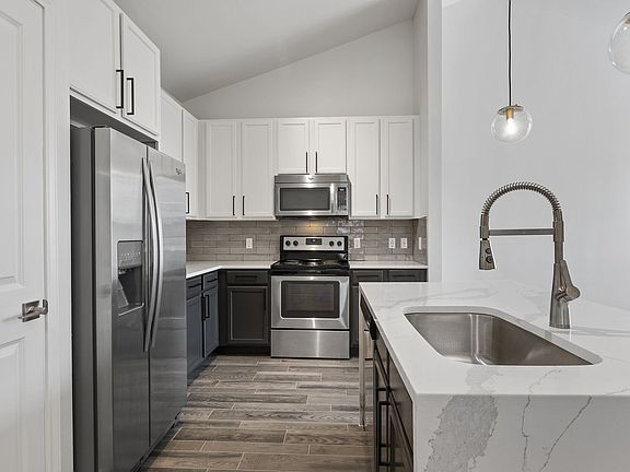 Updated cabinetsStainless steel appliancesWood-style flooringModern backsplashFully equipped kitchenUnder-mount sink