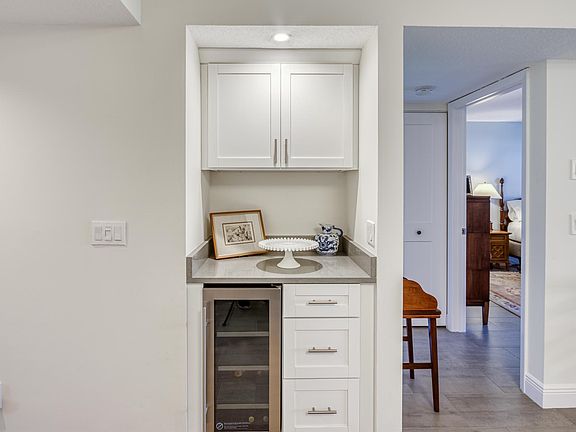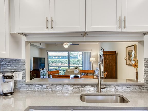 This first-floor condo is beautifully modernized and ready for you to move in! Updated kitchen with white shaker cabinets, quartz counters and stainless-steel appliances. Updated bathrooms with tasteful finishes and frameless glass doors. The tile floors extend out to a beautifully tiled lanai. Convenient dry bar with beverage fridge for entertaining. Elevated closet storage. Fully protected with impact glass and accordion shutter keeping your patio dry and wind-free. All new roofs throughout the community. Combine that with an HOA so well-managed they're actually DROPPING the HOA fees, and a Seller so meticulously clean you'll wonder if they actually live there, and all you need to do now is move your stuff in and enjoy the friendly community!