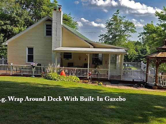 Forest Hills Schools.. Very well maintained stone & vinyl sided ranch home with 2 bedrooms, 2 bathrooms, 1 car integral garage & a 1 car detached garage on 0.60 of an acre lot, bordered by woods. Recently remodeled LR, eat-in kitchen, sunroom with 1st flr. laundry, 2 BR's with dbl. closets & BA. All appliances included. Walk-out basement with BA. Lg. wrap around deck with built-in gazebo. Outside is nicely landscaped! Low taxes!! A must see!! Many updates including: Boiler-2008, HW tank-2014, roof-2008, new flooring-2018, dbl. chimney-2006 & more. Ask for a list of improvements.