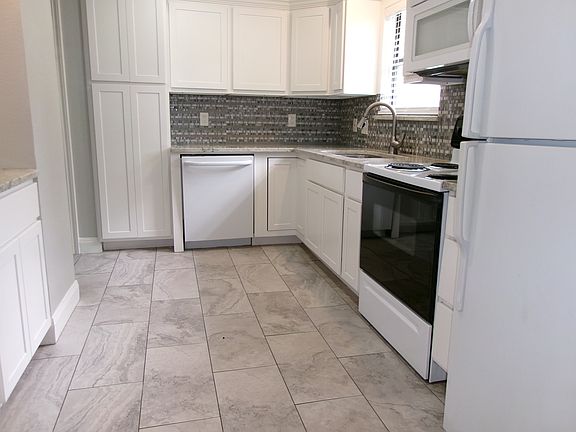 Cozy 2 Bedroom, 1 Bath , 1 Car Garage, Property with Upgrades! Kitchen has Granite Counter tops, Good Size Cabinets, Appliances include Electric Stove Oven Range, Built-in Microwave, Dishwasher, Living Rm & the Bed-Rm's have wood floors, Ceiling Fan Light Fixtures thru out property, Bath-Rm has granite counter top, Surround Tile for Shower Tub area. Great Size Back yard & covered patio. Refrigerator and washer and dryer included. 12 month lease term, tenant responsible for utilities, and lawn care. No pets, No Smoking