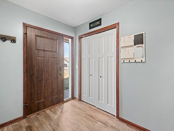 You will love this beautiful & well maintained home in the growing community of Isanti. Located on a cul-de-sac near the nationally acclaimed BMX track, Bluebird Park, the soccer field, skate park and close to walking trails. This home has great curb appeal and offers a fully fenced in backyard with a storage shed & a playhouse. Natural sunlight streams through this home and accents the open floor plan & inviting spaces. Enjoy Spalted Maple laminate floors, a neutral color palette and a center island in the kitchen along with a built-in window bench for storage in the living room & a vaulted ceiling. Upper level bedrooms have ceiling fans & walk-in closets & the lower level family room is spacious. Two bedrooms & a 3/4 bath with a tiled shower, under the stair storage & a laundry room can also be found in the lower level. The garage is wired for a welder & a heater and the floors are epoxied. Relax on the deck overlooking the backyard or around the firepit. Welcome Home!