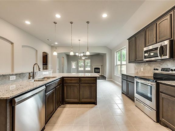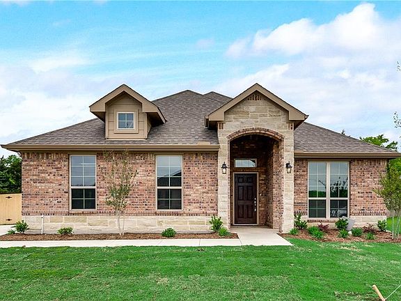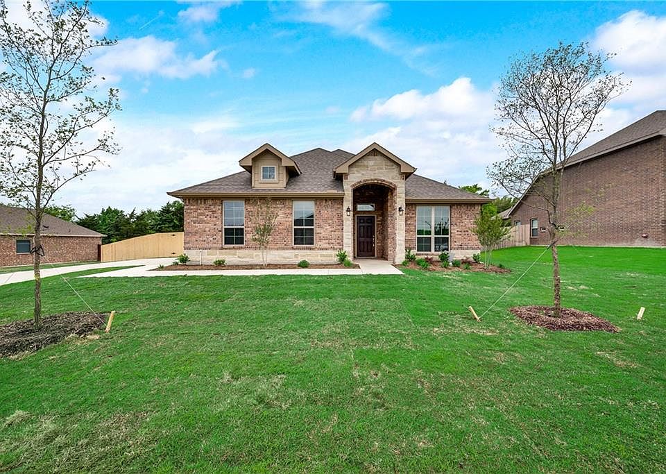 The San Saba plan offers a private study that could be used as a 4th bedroom, large secondary bedrooms with walk in closets, and a private master suite that includes an oversized master closet. This home boasts a large covered back patio so you can enjoy a private backyard entertaining area. The stone and brick front elevations offer beautiful curb appeal with gorgeous stained shutters!