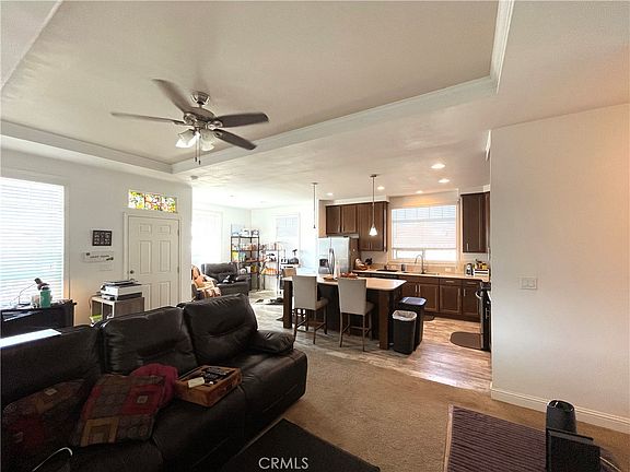 Almost like brand new home. Double Wide, 24'x56' home, approx. 1344 sq.ft. 3beds, 2baths. Upgraded 9ft high flat ceiling throughout. Upgraded dual pane windows. Upgraded Corian countertop. Upgraded cabinetry, Overhead cabinet in laundry. Included Stainless steel appliances, Central Air, Storage shed, Artificial grasses and vinyl fences installed.