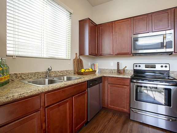 In the heart of Chandler, you will find your new home has or is near all you could need. Casitas at San Marcos offers gorgeous apartment homes with a single-family home feel. Granite countertops and stainless steel appliances will make time in the kitchen feel like a culinary delight. Private backyards, wood-style vinyl plank flooring, and available garages top off the feel of polished living. As you stroll through the community you will discover activity paths, beautifully landscaped courtyards, and a recreation area for fun. Yes, we have cornhole games and a putting green!If relaxation is your vibe, take a dip in our crystal pool or soak in the spa, no matter your mood, Casitas at San Marcos can match how you feel.