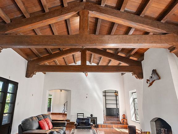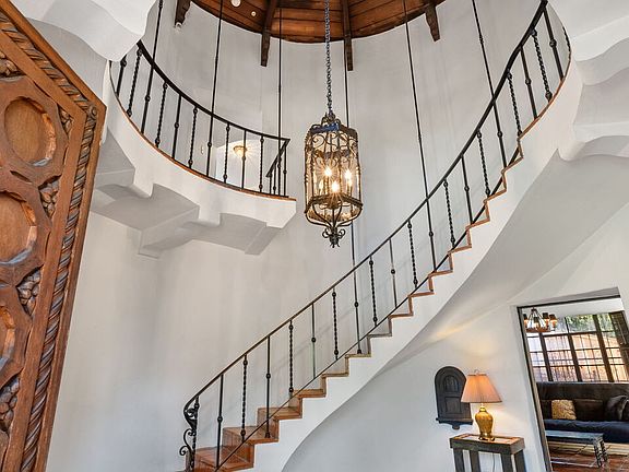 ***WOW, what an incredible price improvement!!*** The "Crown Jewel of Brookside" has been a highly admired property in the neighborhood for years, and is now available for purchase! This Spanish Colonial style home perched above street level features: 4 bedrooms, 6 baths, a library, large living room with huge beamed ceiling and fireplace, formal dining room, huge kitchen with room for double refrigerator/freezer combination, breakfast room with built-in wine rack, 3 pantry storage areas, separate laundry room, dumb waiter, laundry chute, desk area off breakfast room, upstairs living room, office and a yoga room. The bar room off the living room was added by the well acclaimed architect, John Lautner! The property's distinctive style incorporates neutral tones, Tera-Cotta tiles, beautiful re-finished hardwood flooring, a deep covered upstairs porch, arched elements, exposed beams, plaster walls, antique hardware and lights, original wrought-iron truss supports, hand carved doors, original wood and metal casement windows and the natural tones are in keeping with the feeling, "Warm and Timeless". This distinctive architectural style additionally boasts a GRAND Rotunda style entrance with an 18+ foot hi-beamed ceiling. Gated and located on a large lot accented with mature trees. Stunning!