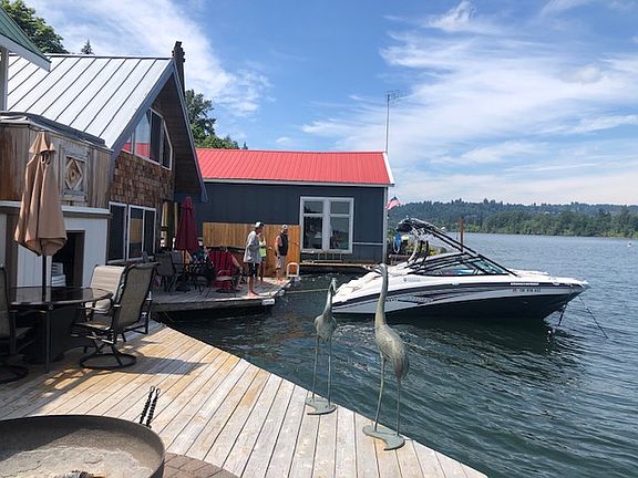 Charming three bedroom floating home on the Willamette River. The two story home is located above the falls in Oregon' City's historic Canemah area. Fish from your own private dock. Small moorage community. Easy access to freeways and downtown Oregon City and Canby. Gorgeous sunrises, cozy wood stove. Cold plunge in the morning and warm up by the fire. Kitchen with granite countertops, wood floors. Guest bedroom/office on the main floor, two bedrooms and a bath upstairs. Stack washer and dryer on main floor.