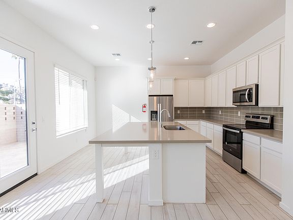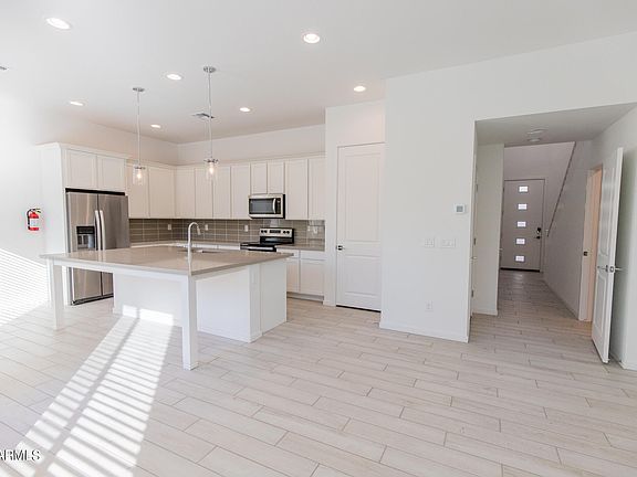 As you step inside, you'll be greeted by a spacious layout designed for contemporary lifestyles. The main floor boasts a sleek kitchen equipped with stainless steel appliances, LED pendant lighting, and a dedicated pantry for your culinary endeavors. The cozy eat-in nook seamlessly flows into the inviting great room, creating the perfect space for gatherings and entertaining. You will also find three comfortable bedrooms, including a luxurious master suite complete with its own ensuite bathroom. Step outside onto the walk-out balcony from both the kitchen and one of the bedrooms, offering a serene spot for al fresco dining or simply unwinding amidst the Tempe skyline.